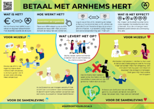 Arnhems Hert groeit! Ben jij al aangesloten bij de Arnhems Hert community of ben je geïnteresseerd in Arnhems Hert? Het kan misschien een uitdaging zijn om de voordelen van het betaalmiddel Arnhems Hert en een lidmaatschap direct te begrijpen, óf aan anderen uit te leggen. Daarom hebben wij infographics laten ontwerpen door community-lid Kim Lagerweij van Pluk de dag – Green Graphics.